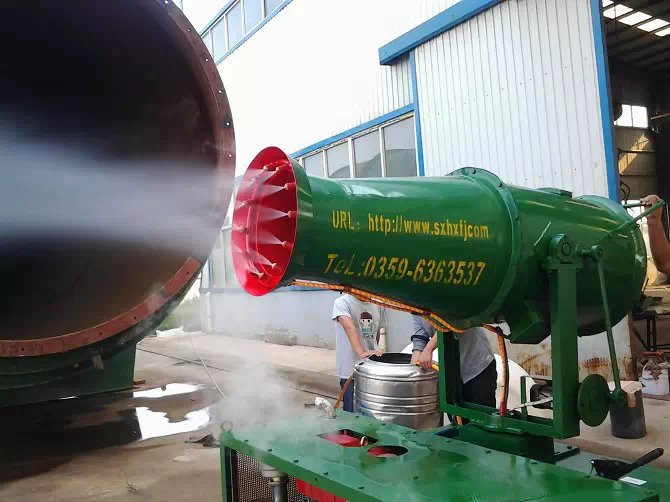 功力強、射程遠、覆蓋范圍廣、可實現(xiàn)精量噴霧;工作效率高、噴霧速度快;對容易引起塵埃的堆場噴水除塵時,噴出的霧粒細小、與飄起的塵埃接觸時,形成一種潮濕霧狀體,能快速將塵埃抑制降沉。